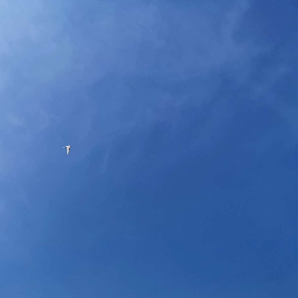 当我们在台阶上静坐成四块小岩,好奇心驱使下的一只褐翅燕鸥开始尝试降落靠近。一米开外,它昂着头看我,想到那双亮晶晶的眼睛看遍风浪却依然勇敢、自信、纯净、好奇,我有点羡慕有点痴。